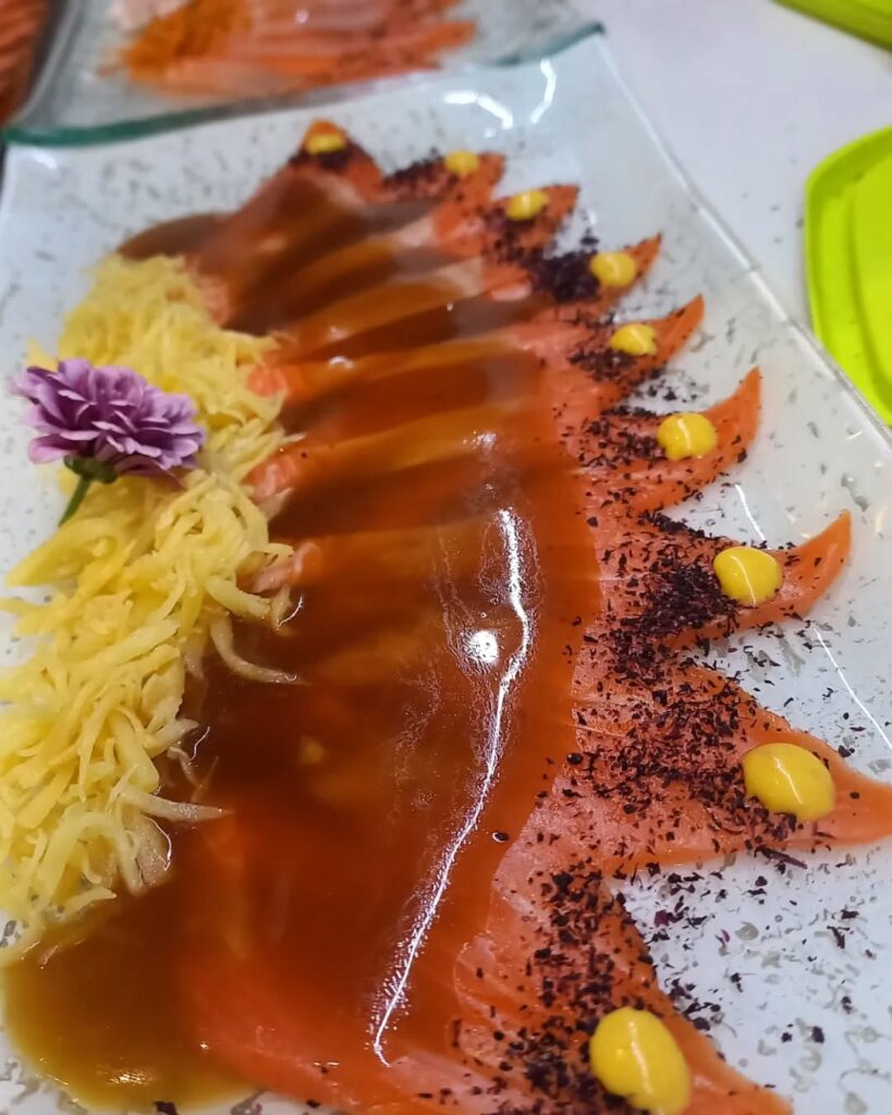 Platos especiales como tiraditos, makis y preparaciones a la parrilla (al carbón), fusionando sabores tradicionales con toques innovadores al momento